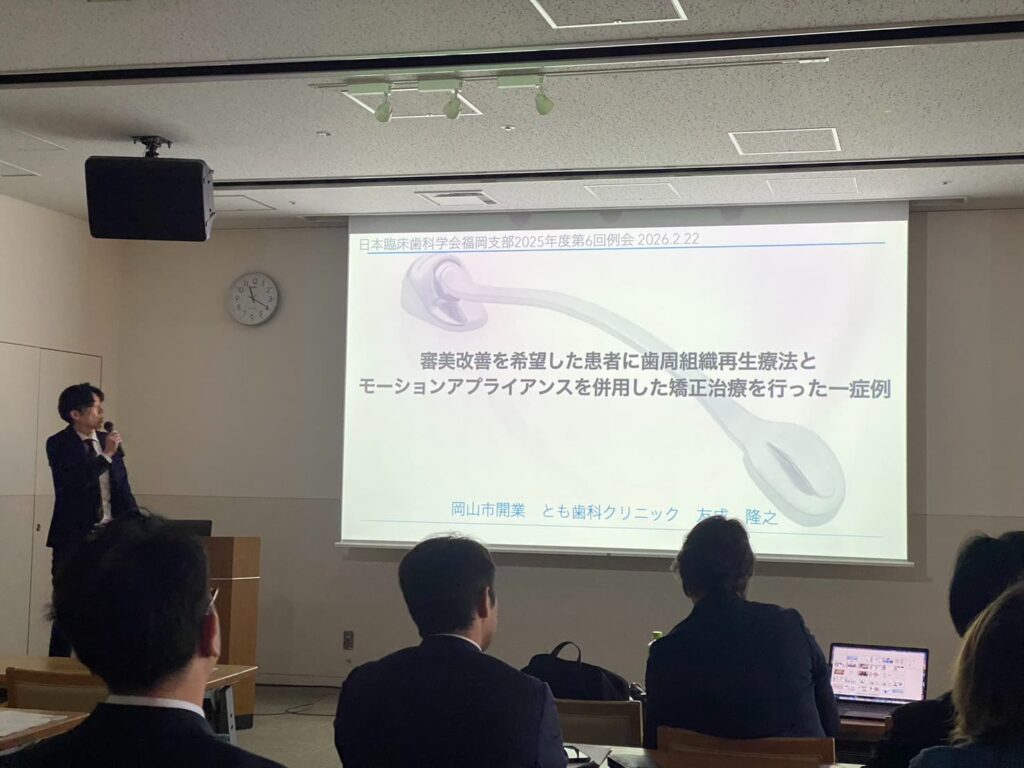 一般講演4 とも歯科クリニック 友成隆之先生による「審美改善を希望した患者に歯周組織再生療法とモーションアプライアンスを併用した矯正治療を行った一症例」